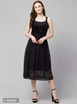 Trendy Sequinned Mesh Dress Length - Calf length Neck- Shoulder Strapes Print/Pattern - Solid Sleeve Length- Sleeveless Fit/Shape- Empire Fabric - Lace Design Polyster Net Occasion- Party Size - S(Bust Size:34 in, Length Size: 45 in) M(Bust Size:36 in, Length Size: 45 in) L(Bust Size:38 in, Length Size:46 in)