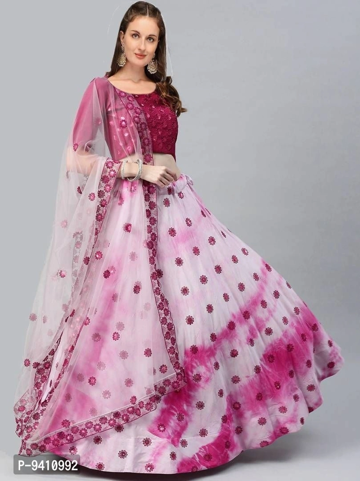 Color - Lehenga Color- White , Blouse Color- Pink , Dupatta Color- White, Inner Color- - Fabric - Lehenga Fabric- Georgette , Blouse Fabric- Banglory Silk , Dupatta Fabric- Net, Inner Fabric- - Length - Lehenga Flare- 4 MT , Lehenga Length- 42(Inch) ||Lehenga Waist Size- Up To 42(Inch) , Blouse Length- 0.45 MT With Sleeve 0.4 MT , Dupatta Length- 2.25 MT- Work Stitched Type - Lehenga Work- Embroidery Sequence Work , Blouse Work- Embroidery Sequence Work , Dupatta Work- Embroidery Sequence Work, Stitched Type- Semi-Stitched - Wash Care - Wash Care: Dry Clean For The First Wash, There After Hand Wash