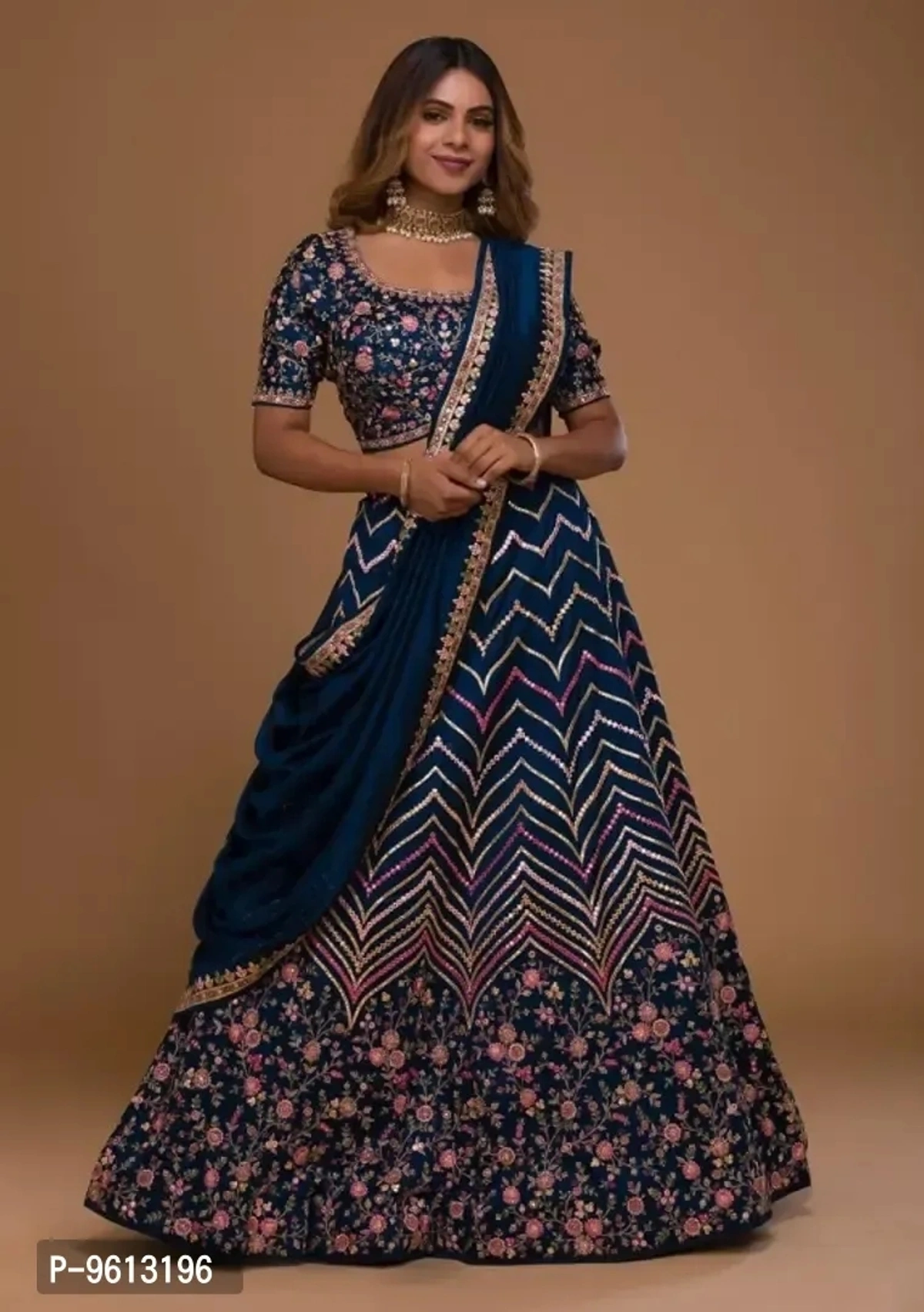 Trendy Women Embroidered Semi Stitched Satin Lehenga Choli