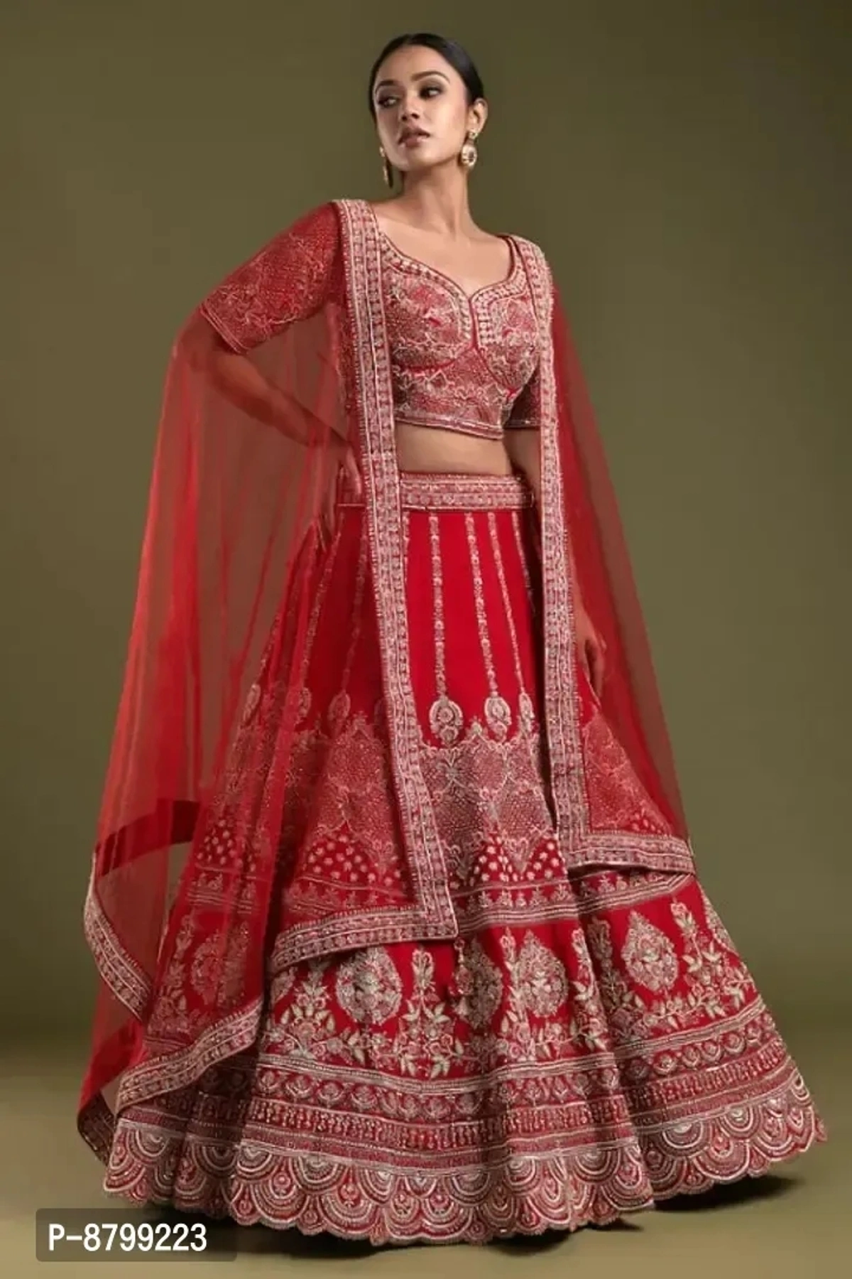 Trendy Women Embroidered Semi Stitched Satin Lehenga Choli