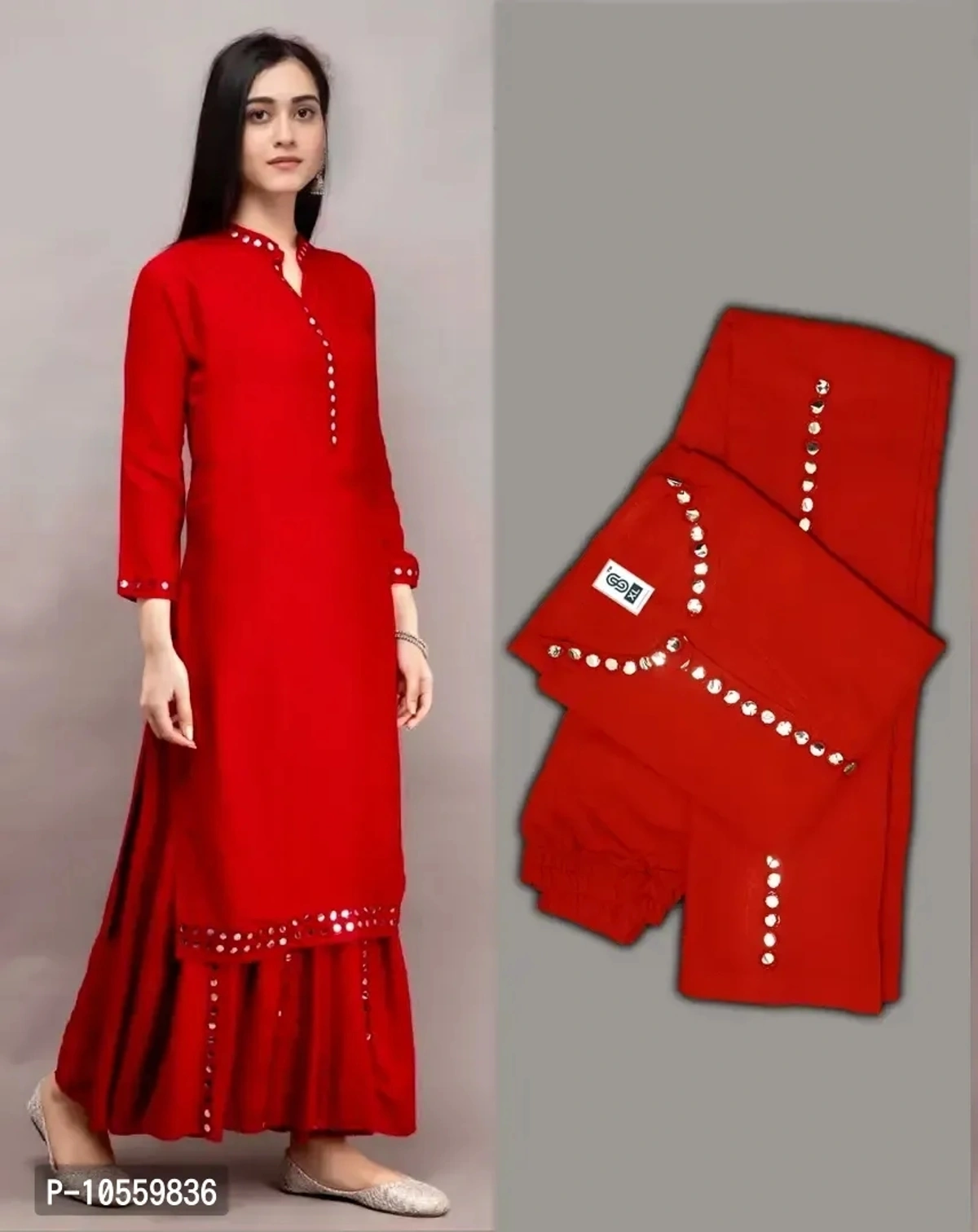 Trendy Women Rayon Kurta with Bottom KURTI 46 PANT 38 DUPATTA 2.25 METER