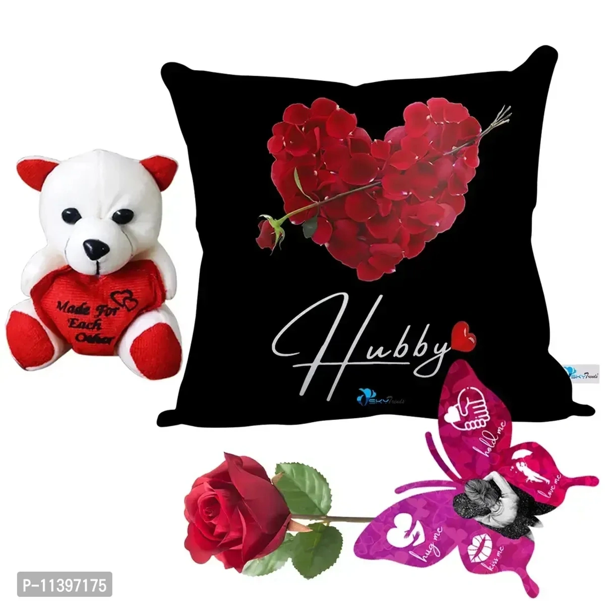 Fabric- Satin, Work- Printed, Shape Type- Square Shaped, Cushion Cover Size-12 X 12 Inch, 1 Filler, Teddy Size- 06 Inch, 1 Greeting Card, 1 Rose