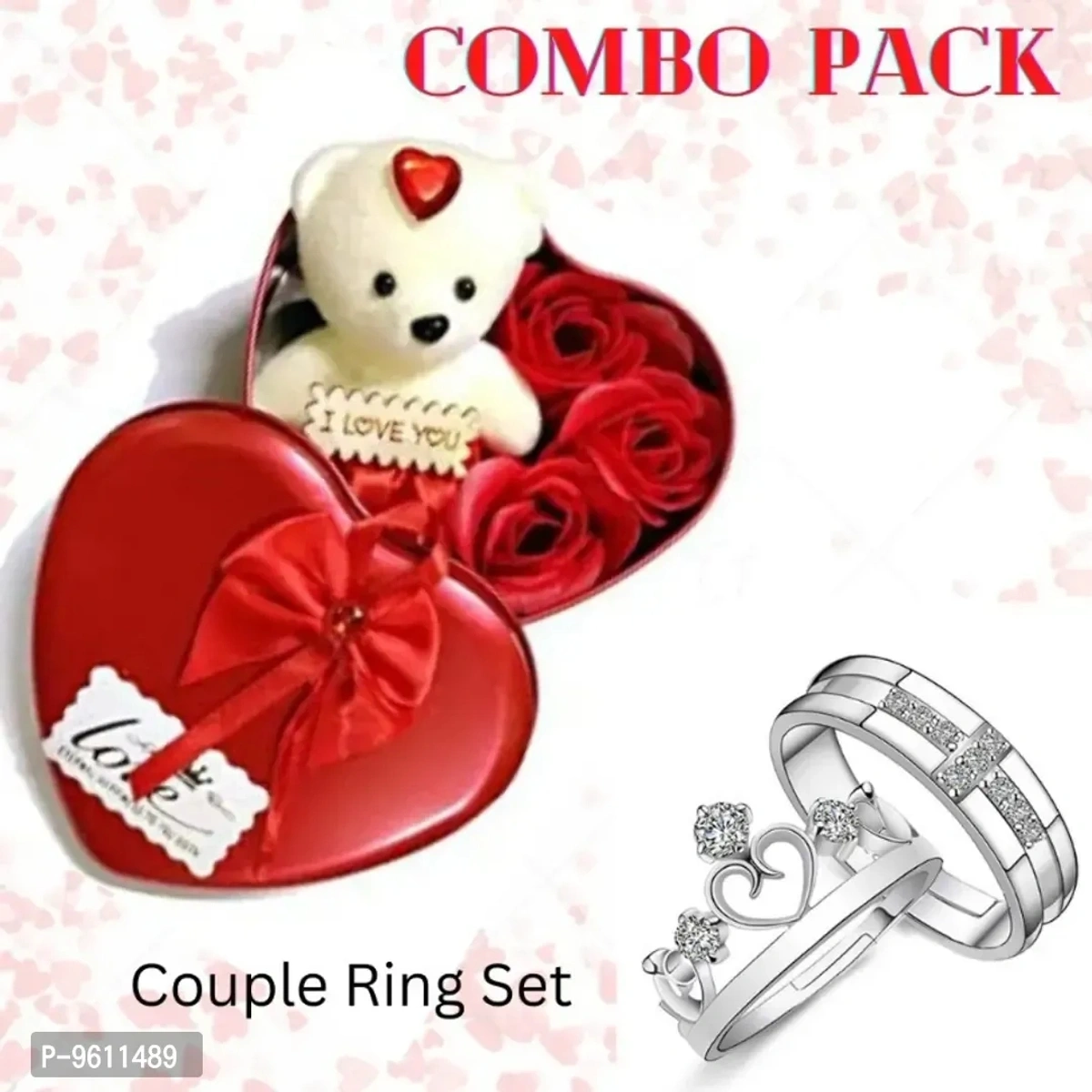 Valentines Silver Touch Couple Ring Sweet Love Heart Gift Box Combo for Women