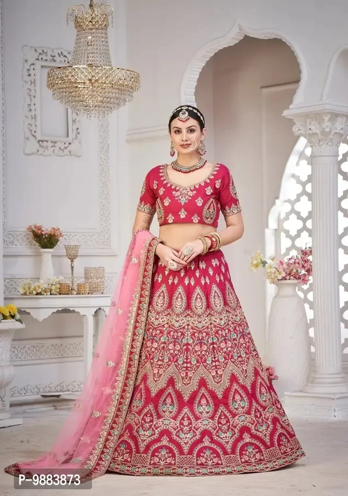 Women Art Silk Semi Stitched Lehenga Choli