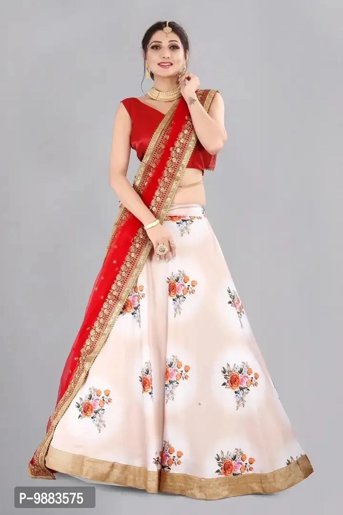 Women Art Silk Semi Stitched Lehenga Choli