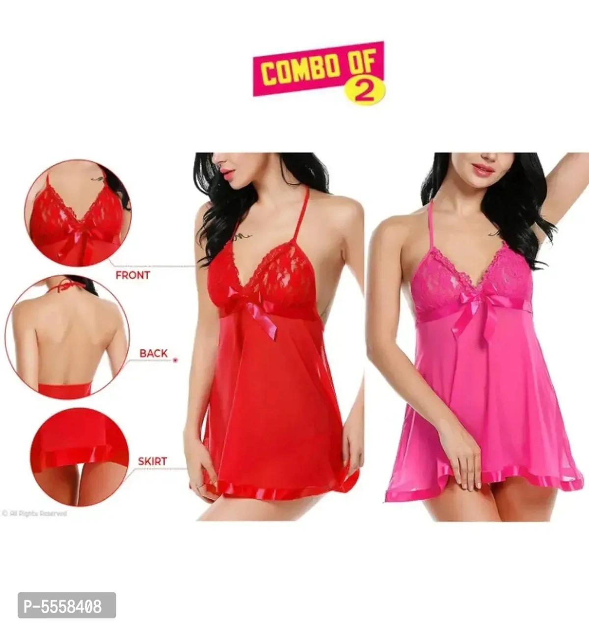 Women Fancy Lace Baby Doll Dresses Nightwear Red and Pink Color