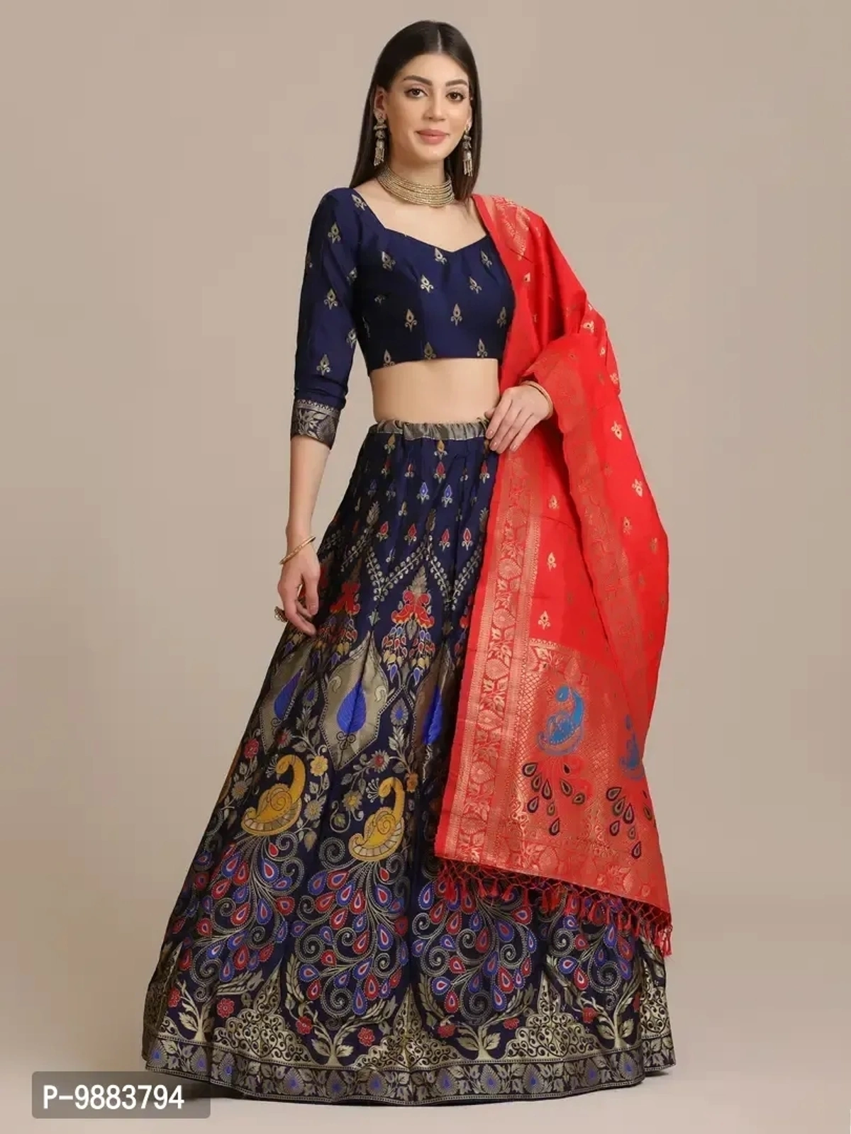 Women Jacquard Semi Stitched Lehenga Choli