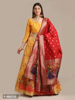 Women Jacquard Semi Stitched Lehenga Choli