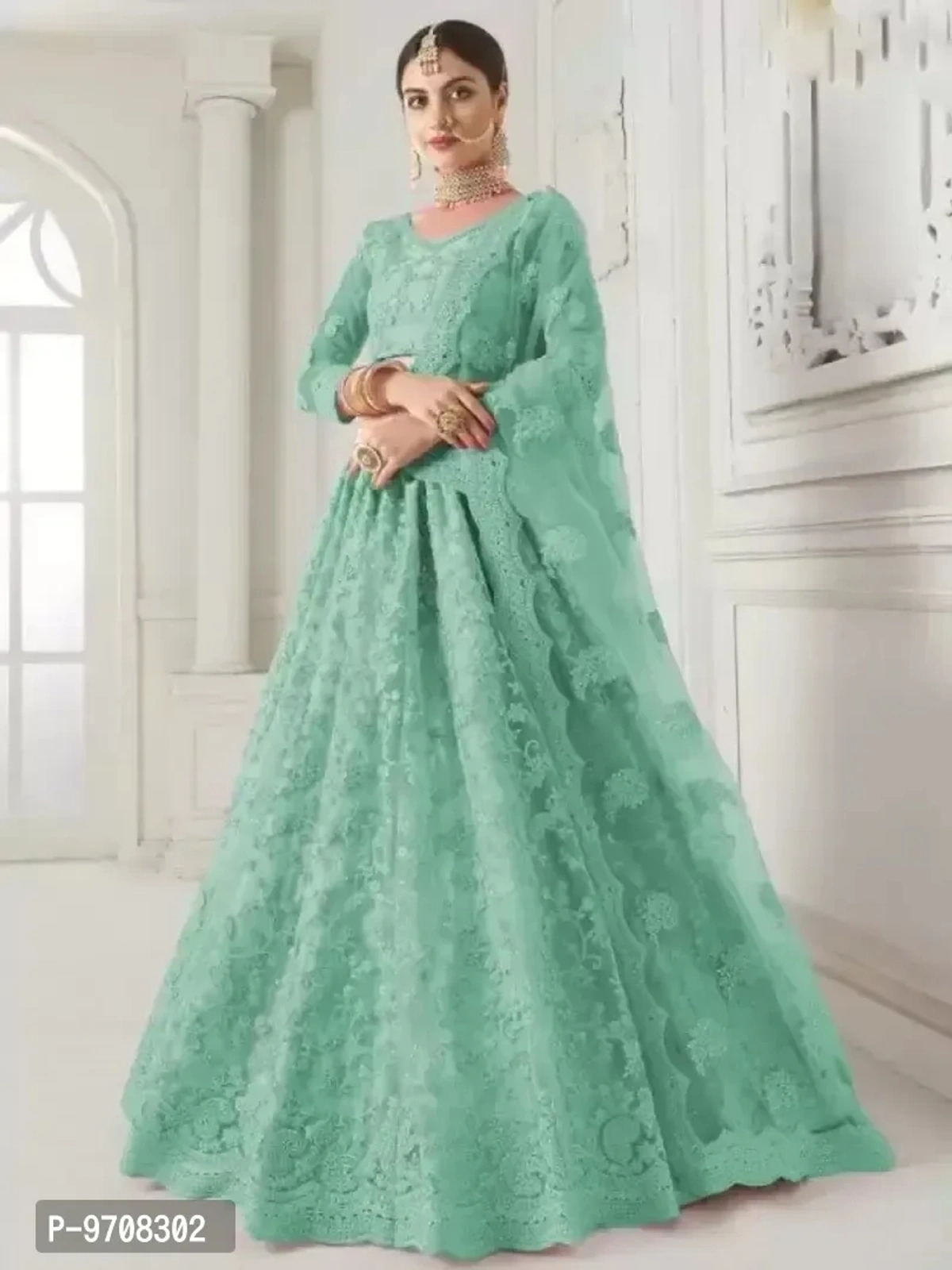 Women Semi Stitched Net Embroidered Lehenga Choli