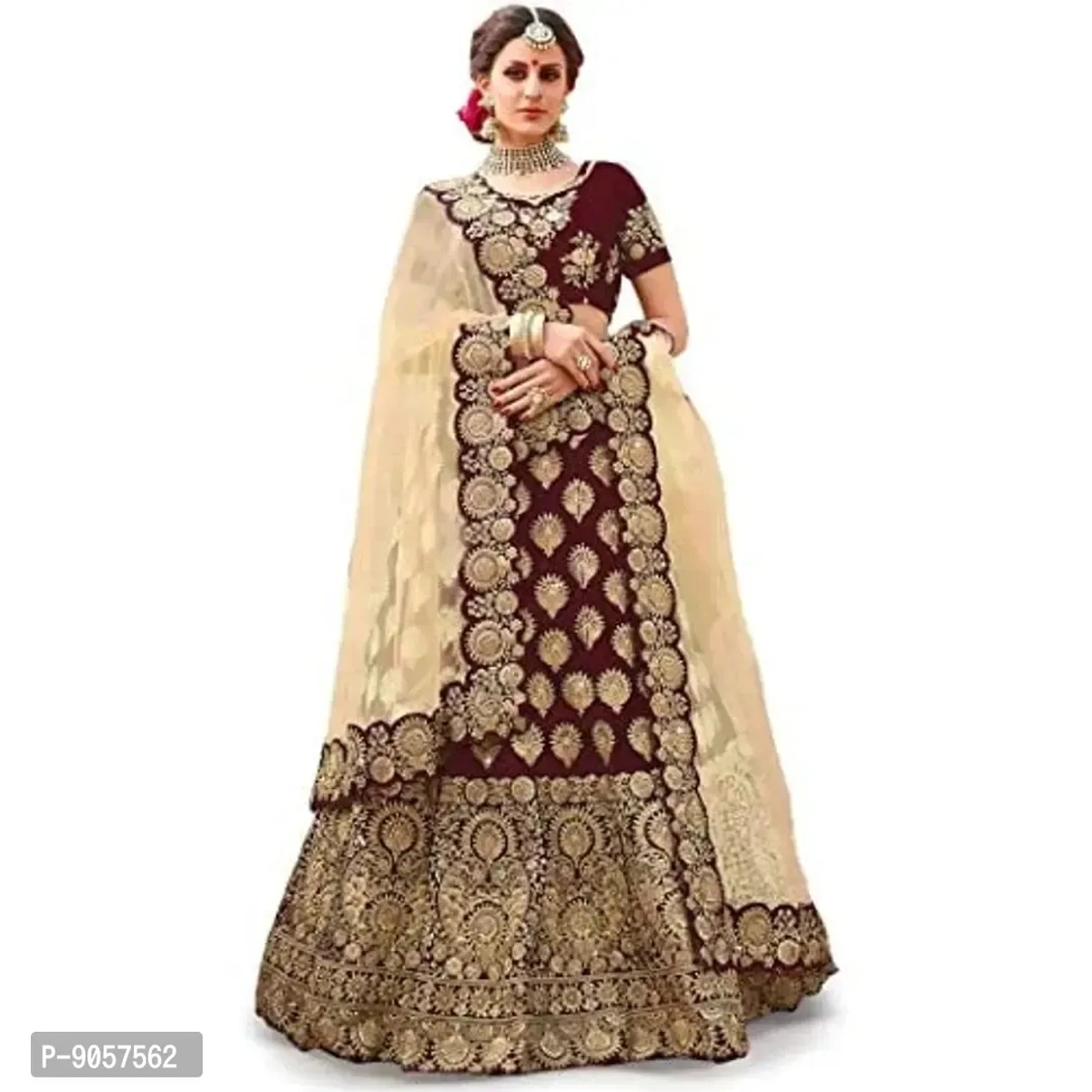 Women's Satin Embroidered Semi Stitched Lehenga Choli (MAROON)