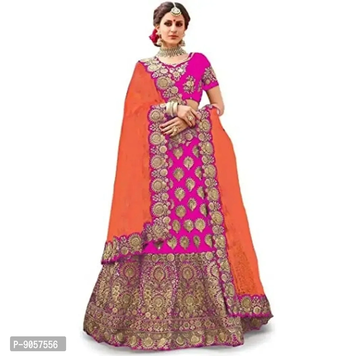 Women's Satin Embroidered Semi Stitched Lehenga Choli (PINK)