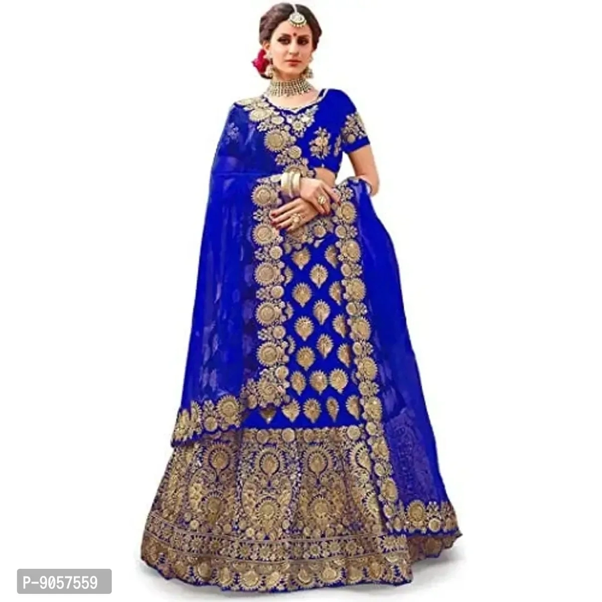 Women's Satin Embroidered Semi Stitched Lehenga Choli (ROYAL)
