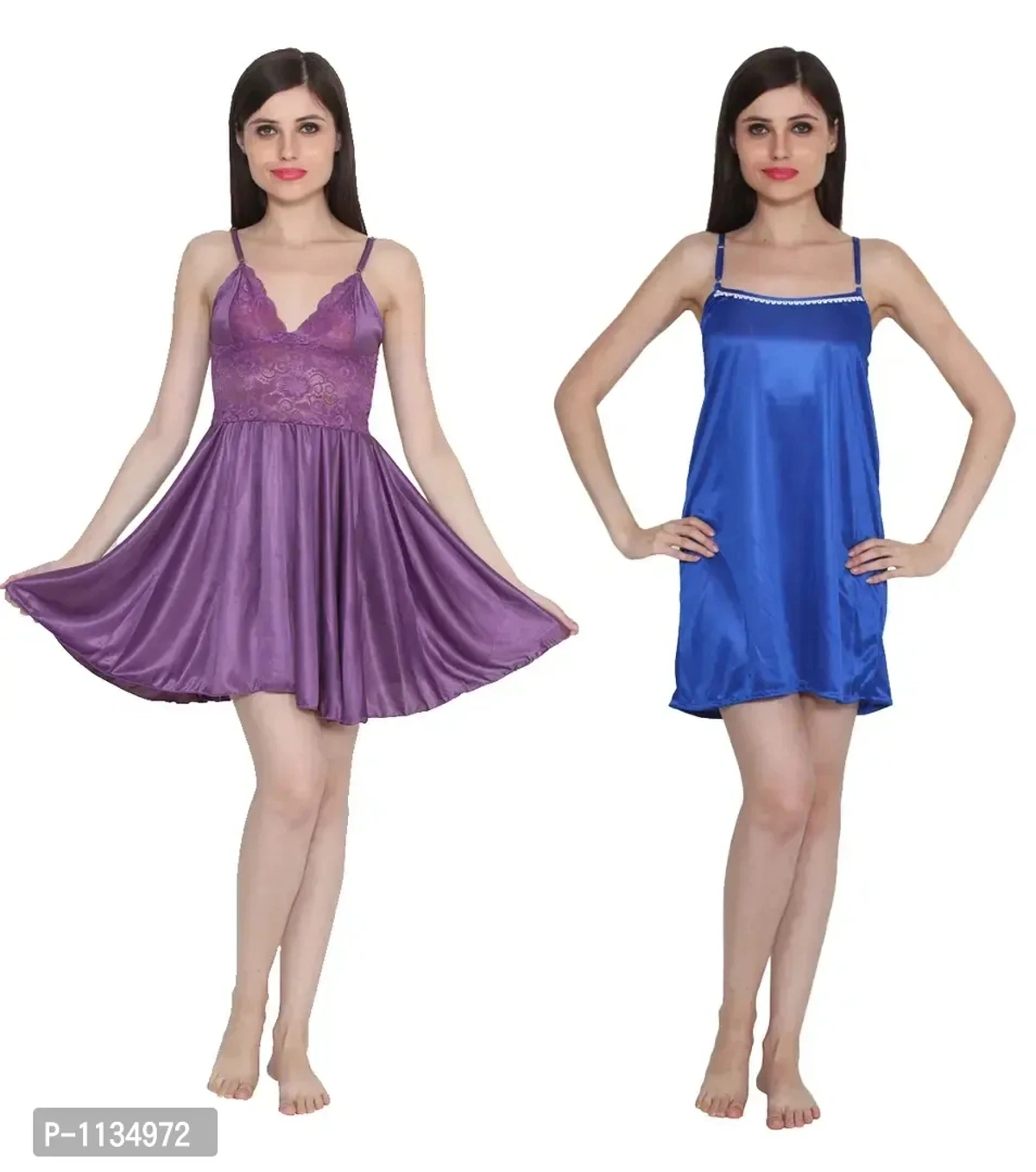 Women's Satin Nightwear Babydoll Dress Pack of 2