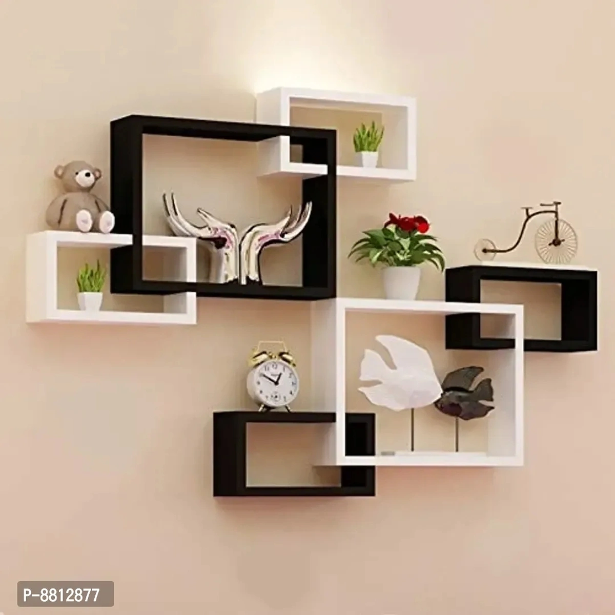 Wooden Interlock Wall Shelves 100% Good Wall Decoration Intersecting Floating Shelves -Set of 6