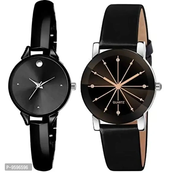 Zuperia Combo of Crystal Glass Leather Strap Watch and Bangle Analog Watch for Girls and Women