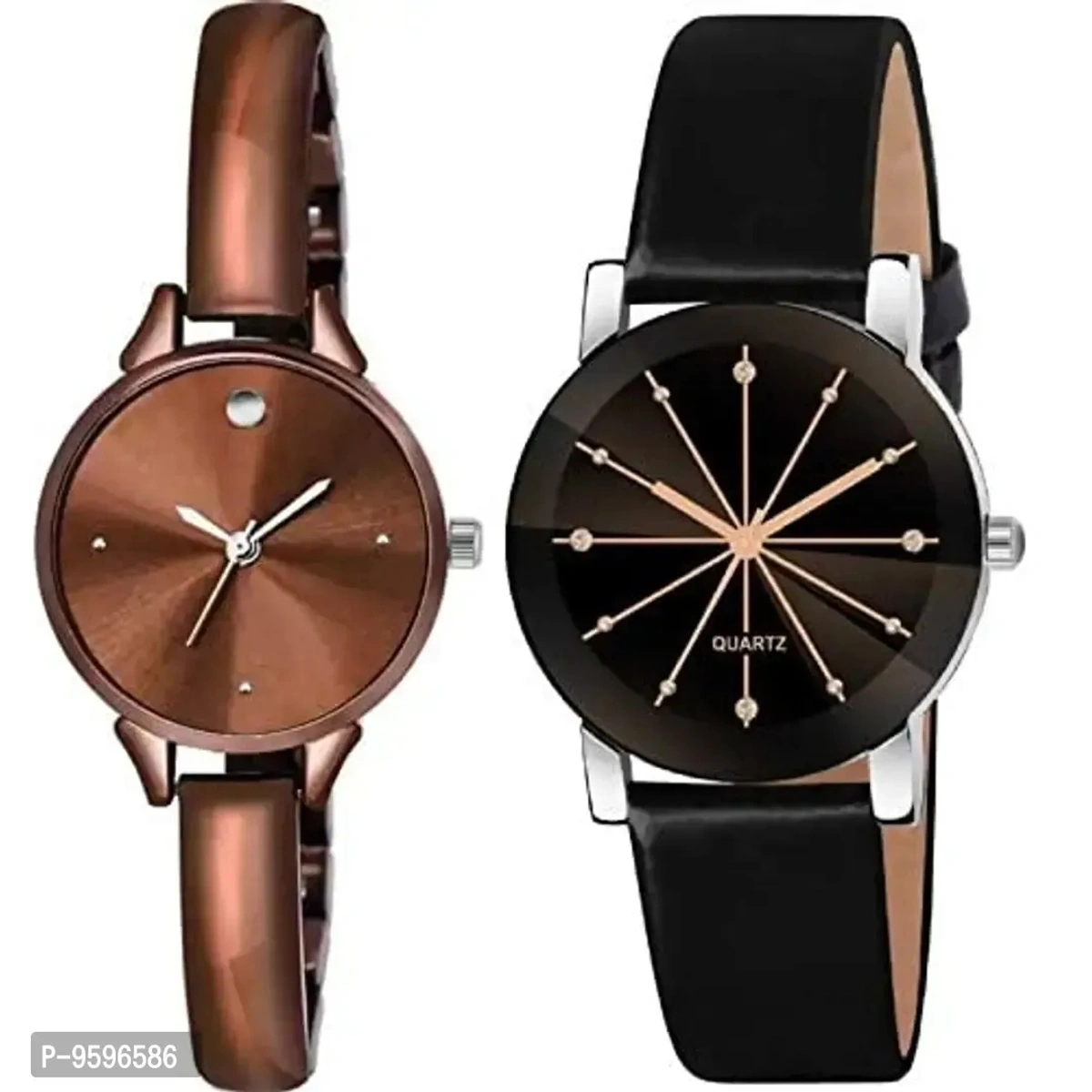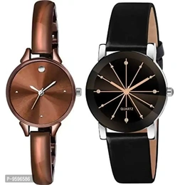 Zuperia Combo of Crystal Glass Leather Strap Watch and Bangle Analog Watch for Girls and Women